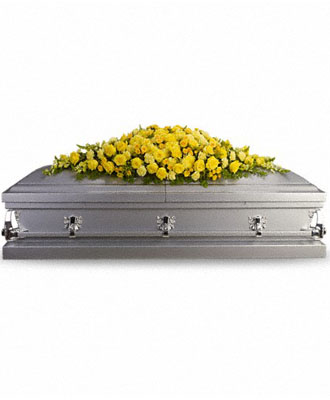The Golden Garden Casket Spray features a lively mix of yellow roses, carnations, snapdragons, chrysanthemums, and more, bringing warmth and radiance to even the darkest moments. While the yellow roses take center stage, each flower adds its own distinct touch to the arrangement. The snapdragons represent happiness, while the carnations evoke feelings of sorrow and bereavement. The spray roses add grandeur to the display, and the chrysanthemums express heartfelt condolences - especially when they are yellow.